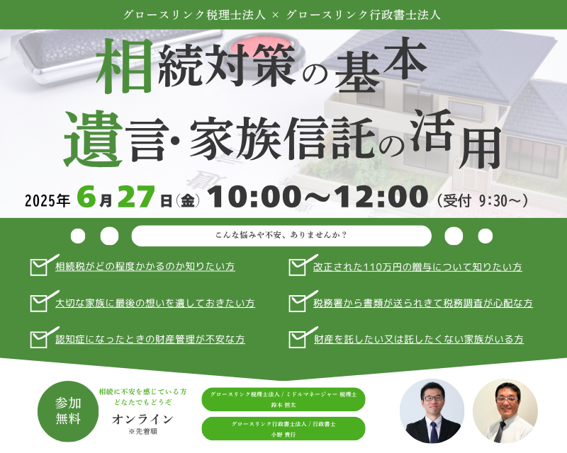 相続対策の基本/遺言・家族信託の活用開催日:2025年6月27日(金) -
